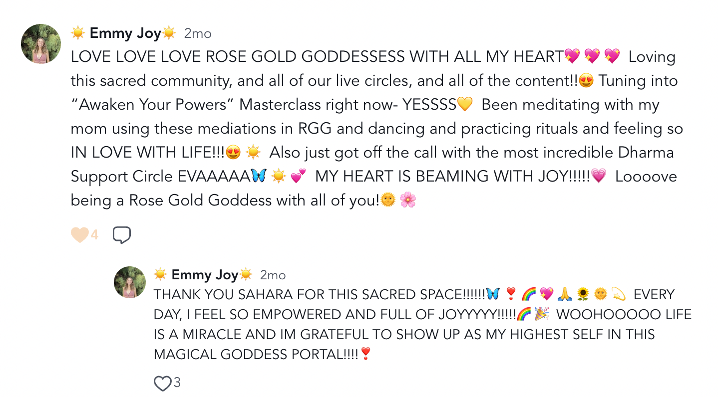 If you are ready for an embodied approach to spirituality, she is the teacher for you. Welcome to the Rose Gold Goddess Path.